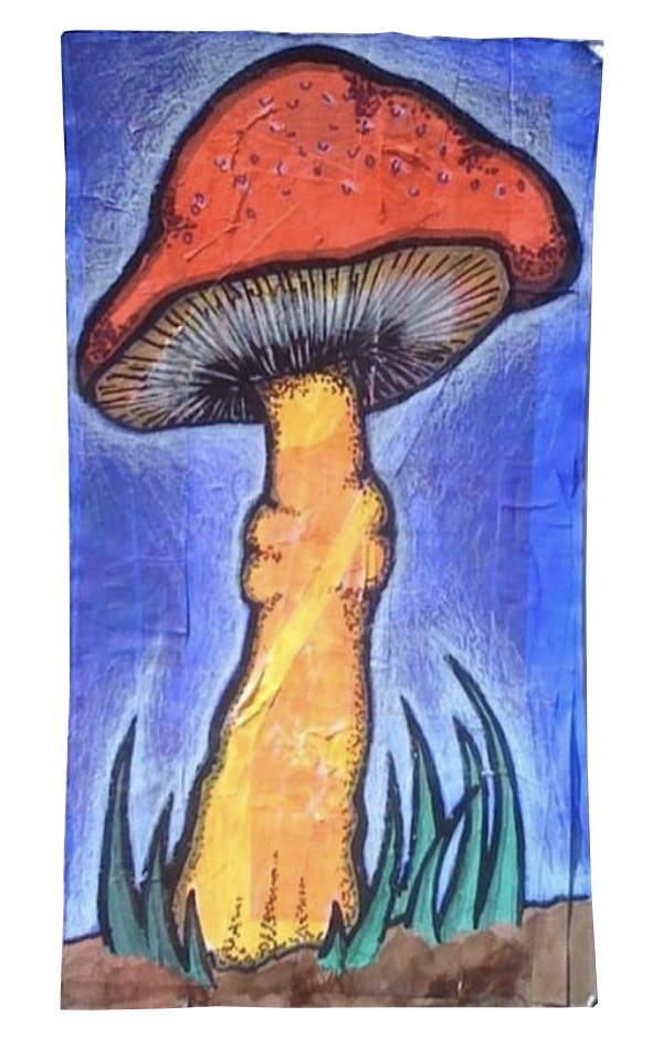 Watercolor marker and acrylic paint on cardboard covered with newsprint