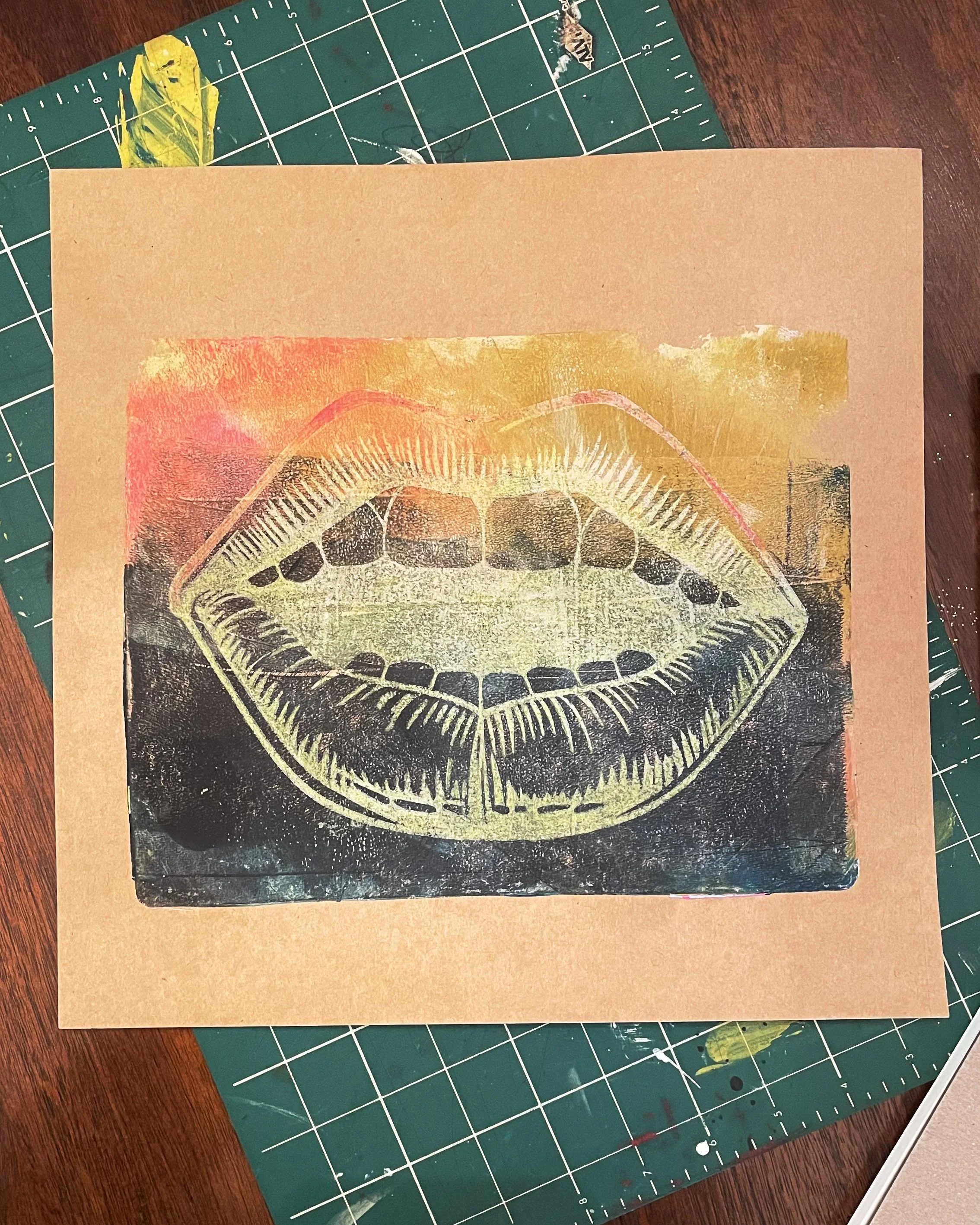 HOT LIPS Gel PrintAI generated lip art gel print. Acrylic paint, colored pencil, and heavy duty craft paper.